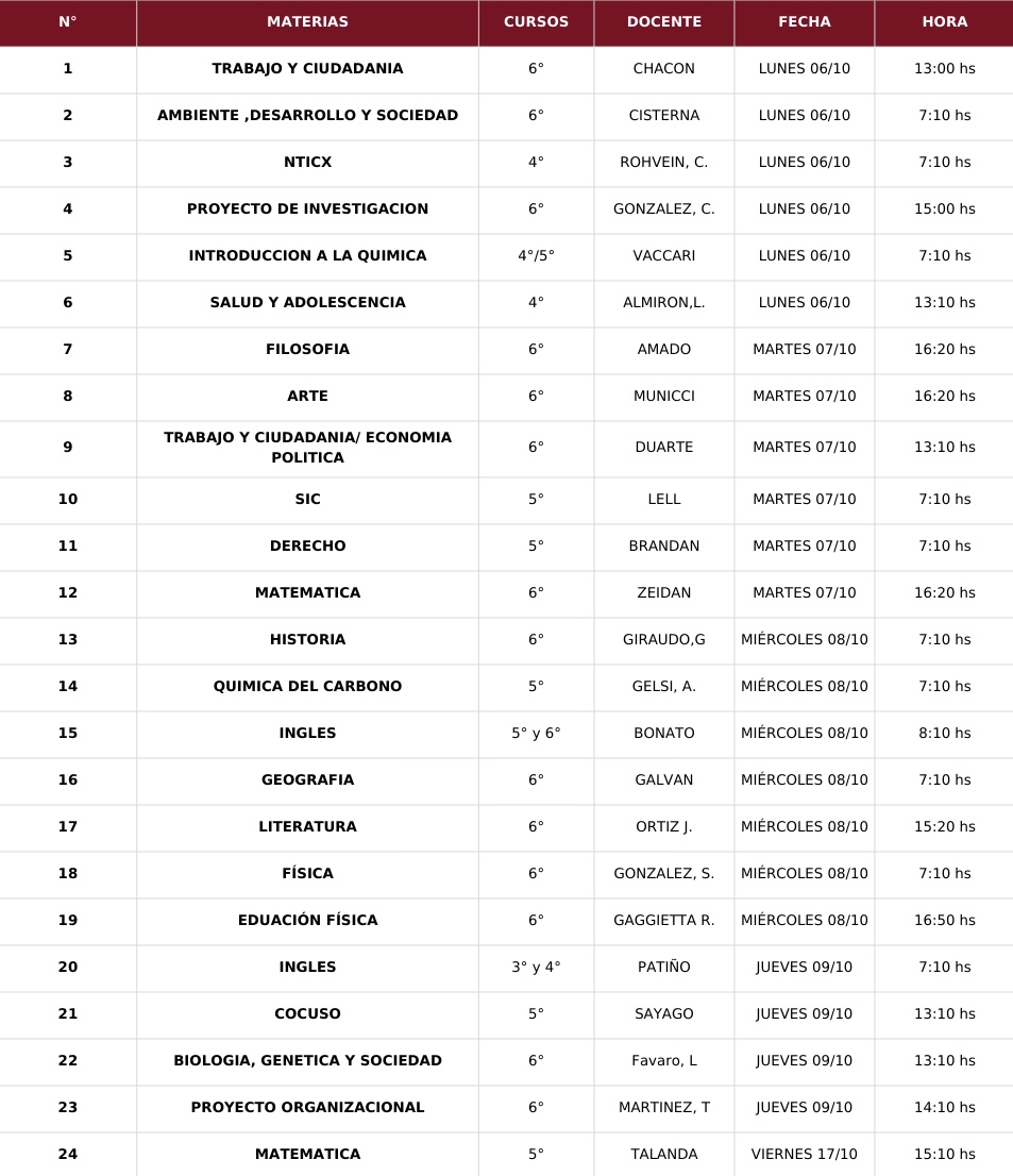 Cronograma mesas de examen Egresados-Octubre 2025