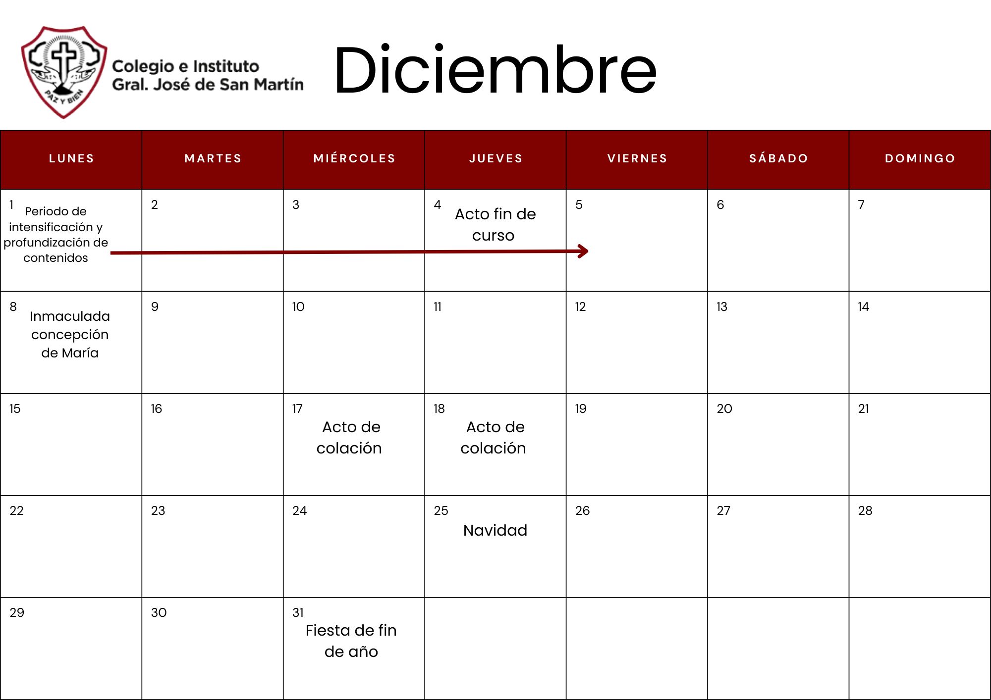 Lunes 24/11 y jueves 4/12 sin actividades. Por favor, téngalo presente para la organización.